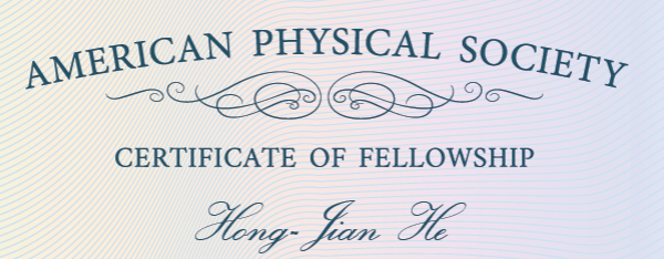 美国物理学会 (American Physical Society,APS)成立于1899 年,是世界上最具声望的物理学专业学会之一,其宗旨为“提升和促进物理学知识”。APS每年增选新会士,作为授予成员的最高荣誉,以表彰他们推进物理学原创性研究、应用物理学于科学技术、以及在物理教育和领导力等方面的重大创新性贡献,当选人数不超过其成员总数的千分之五。APS还出版发行物理评论系列期刊,包括Physical Review Letters、Physical Review、Review of Modern Physics等一流杂志,分别是国际上各专业领域最受尊重、最具影响力和被引用最多的科技期刊之一。
