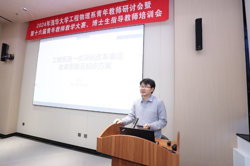 12月7日,2024年工程物理系青年教师研讨会、第十六届青年教师教学大赛、博士生指导教师培训会于刘卿楼105召开。清华大学工会常务副主席张佐、主席助理冀静平,清华大学青年教师教学比赛指导组专家薛芳渝,工物系党委书记曾志,系主任黄文会,系教学委员会主任高喆,副系主任杨祎罡、李亮、赵自然,系党委副书记姜东君、黄善仿,系教代会组长刘以农,系主任助理施嘉儒、王振天,系教评组组长张智,系教学督导组专家魏义祥、施工,博士生指导教师、教学委员会成员、教学督导组成员、团队负责人、青年教师、二级教代会代表及系工会、系机关60余人参加了此次会议。会议由系工会主席俞冀阳主持。