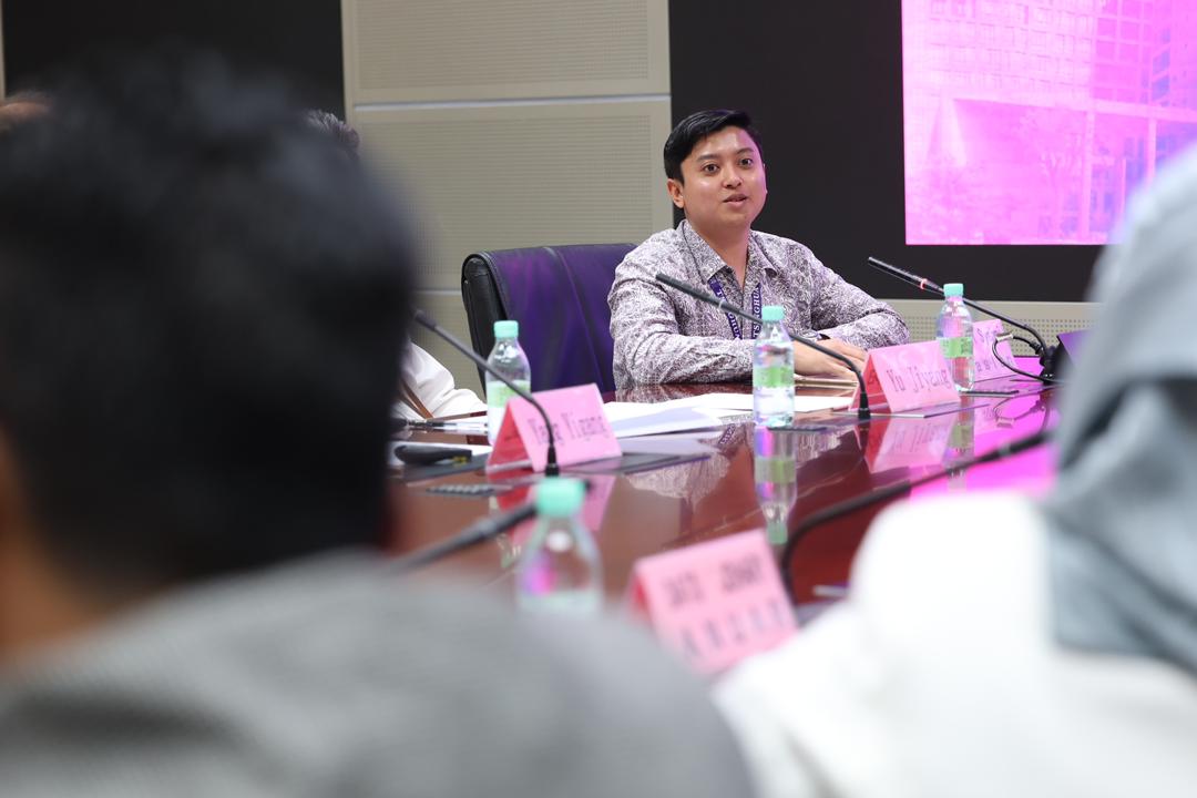 2024级来自马来西亚的TUNEM项目学生代表荣赫(Akmal Syahmi)欢迎雪兰莪州代表团访问清华。他高度评价TUNEM提供的顶级学术资源,包括顶尖教授、先进研究设施、丰富的学习活动,强调这段经历拓宽了视野,坚定了其投身科技发展的决心,并感谢中广核集团的资助与指导。